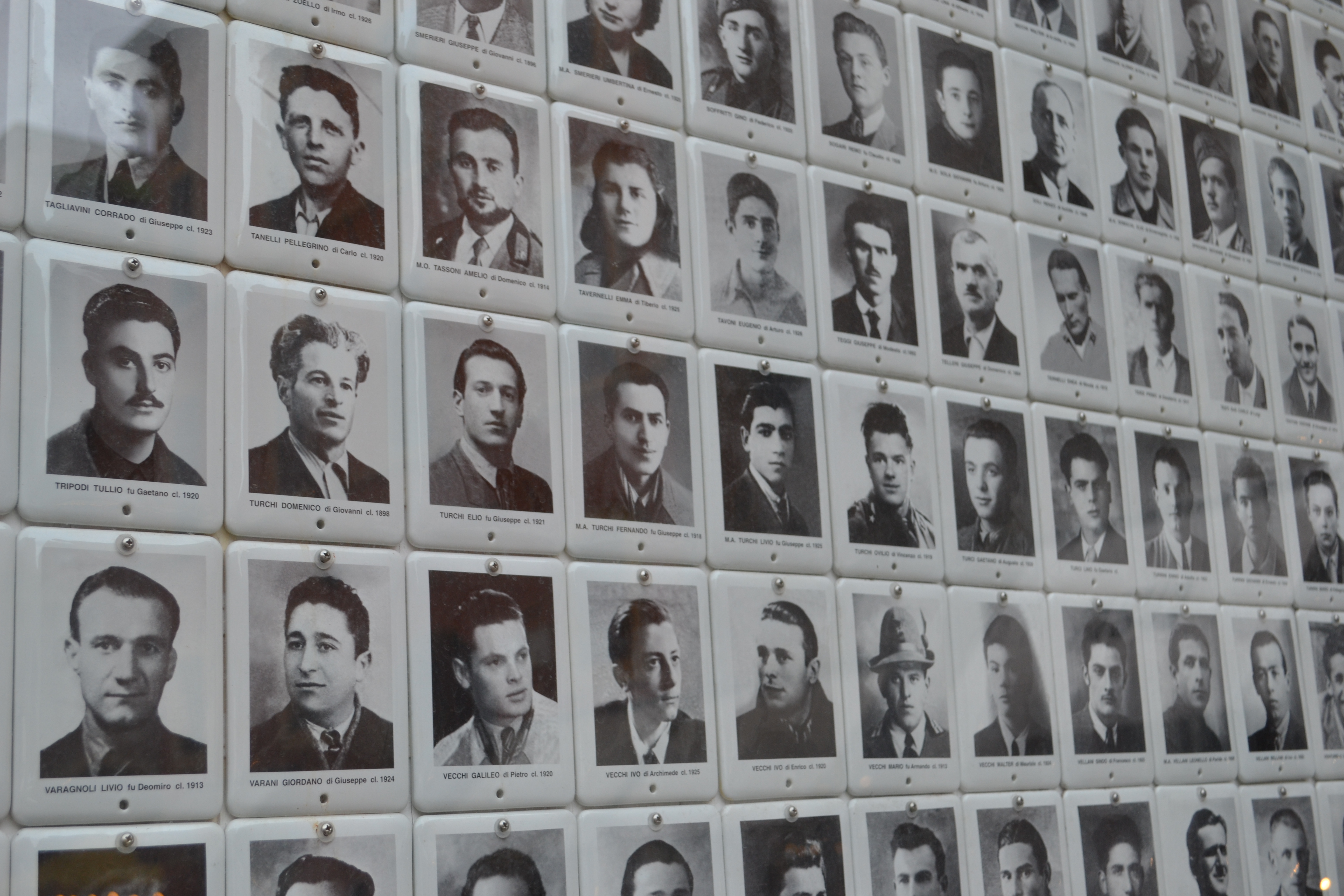 Marzabotto ist eine Kommune in den Apenninen, jene massive Bergkette, die die Emilia-Romagna von der Toskana trennt. In den letzten Kriegsmonaten, also im Herbst/Winter ’44 bis ’45 verlief dort die sogenannte Gotenlinie, die keinem anderen Zweck diente, als den Vormarsch der Alliierten aufzuhalten. Der Krieg war, aus deutscher Sicht, schon längst verloren. Die Militäroperation diente nur noch dem Hinhalten. Die Emilia-Romagna und die Toskana sind sehr linke Flecken Italiens (wie viele andere Regionen und Städte Oberitaliens auch). Als Nebenbemerkung sei erwähnt, dass es ein Treppenwitz der Geschichte ist, dass Mussolini just dort, nämlich in Predappio, geboren wurde, was in der Emilia-Romagna sehr nahe der Toskana und gleich bei den Apenninen, liegt. Obwohl Mussolini etwa versuchte, die nahegelegne Stadt Forlí in eine faschistische Vorzeigestadt umzubauen, waren es genau diese Städte (und ländlichen Regionen) der Emilia-Romagna und der Toskana, die aktiv Widerstand leisteten. Gegen die italienischen Faschisten und die deutschen Nationalsozialisten. Heute wird die Gedenkkultur von dieser antifaschistischen Grundhaltung bestimmt. Partisan_innenhuldigungen finden sich in jedem kleinen Ort. Als besonderes Beispiel sei der Dom von Modena genannt, auf dessen Außenfassade die Namen und Bilder der Partisan_innen, die in und um Modena gewirkt haben, zu sehen sind.
