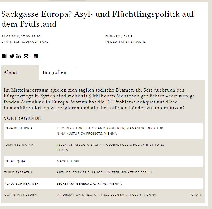 Wer das gesamte Forum Alpbach besuchen möchte muss schlanke 1.200€ dafür hinblättern. Hinzukommen Anreise, Unterkunft und Verpflegung. Einzelne Gesprächsreihen gibt es schon zu günstigen 700€. Für zusätzliche Kurse, etwa zu europäischer Integration, sind noch einmal 1.200€ drauf zu legen. Das ist in etwa ein Dreiviertel-Monatseinkommen einer Durchschnittsverdienerin von Sachsen. Der Hartz-IV-Regelbedarf liegt bei 399€, davon sind ganze 1,52€ für Bildung vorgesehen. Bestimmt gibt es irgendwelche wohlmeinenden Menschen, Stiftungen, Charity-Organisationen, die einem glücklichen Hartz-IV-Empfänger die Teilnahme finanzieren würden, wenn man nur laut genug schreit. Das ist nicht der Punkt. Der Punkt ist, dass Alpbach dezidiert ein sehr exlusives Treffen ist. Alles was Rang und Namen hat, trifft sich und plaudert im beschaulichen Alpbach. Die zukünftige Elite darf auch dabei sein und wird über Stipendien und Ermäßigungen mitgenommen. Dass in diesen Ermäßigungen Studierende erwähnt werden, Arbeitslose jedoch nicht, ist ein klares (wahrscheinlich nicht einmal bewusst gesetztes) Zeichen, wer zur Zielgruppe gehört und wer nicht. Soviel zu den Rahmenbedingungen.