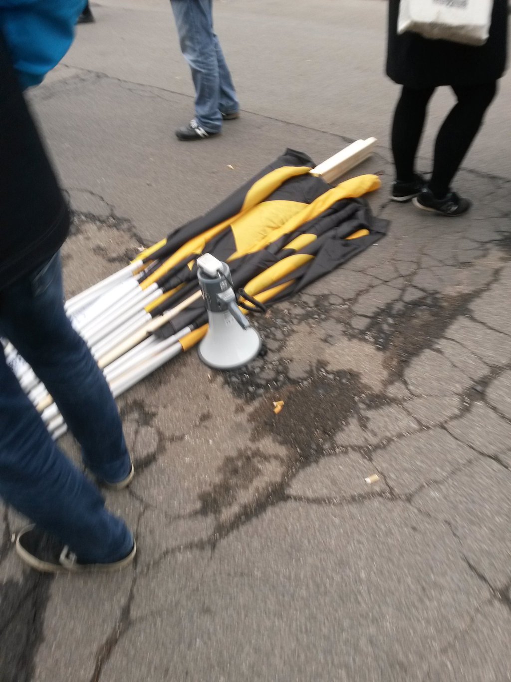 Dazu kommen die Identitären, die offenbar ihre Fähnchen nicht ausrollen durften und das mit einem lächerlich großen Transparent auszugleichen versuchten.
