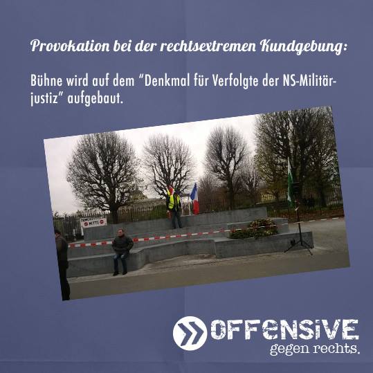 Notiz am Rande: Der KZ-Verband hatte eine Gedenkkundgebung am Denkmal angemeldet, um genau so etwas zu verhindern. Diese wurde zu Gunsten der Rechtsextremen abgesagt.