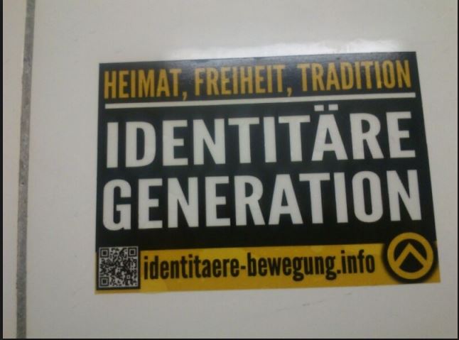 Dieser Spruch ist in der Form ausschließlich von den Identitären. Sie vertreiben ihn auf Stickern, riefen ihn bei ihrer Demo am 17. Mai in Wien (wie von WienTv dankenswerterweise festgehalten) und schmieren ihn mit Kreide auf die Straße.