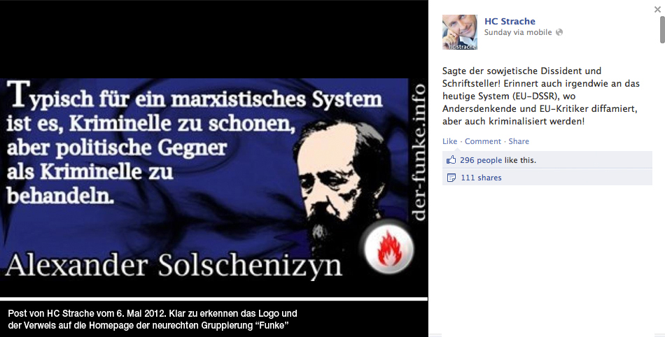 Schon 2012 teilte Straches Facebook-Seite einen Sticker einer Vorläuferorganisation der Identitären – des „Funken“.