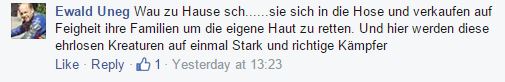 Natürlich tobt unter dem Link auf Straches Seite der braune Mob. Auch nach zwei Tagen wurden hetzerische und offen rassistische Posts nicht gelöscht. Ein kleiner Ausschnitt: