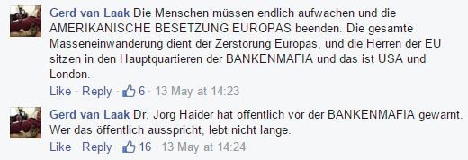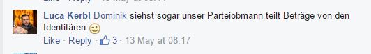Just um den 8. Mai ließ er verlautbaren, wie unfair es sei, dass Gegner eines „marxistischen Systems als Kriminelle“ behandelt werden. Insinuiert soll damit offenbar werden, dass der 8. Mai kein Tag der Befreiung, sondern der Niederlage sei. Und dass vielleicht Nazis gar keine Kriminellen gewesen waren. Mit solchen Behauptungen stünde er nicht alleine da, im Gegenteil – auch dieses Jahr betrauerte etwa der Nationalratsabgeordnete Wendelin Mölzer als Chefredakteur von ZurZeit den 8. Mai. Über die schrecklichen Kriegsverbrechen an den armen Deutschen durch die gesichtslose und tiergleiche Rote Armee oder durch Partisan_innen darf dort im Übrigen ein gewisser Georg Immanuel Nagel schwadronieren. Und der hat neben seinem verunglückten Zwischenstopp als Pegida-Sprecher auch seine Kontakte zu den Identitären. Womit sich wieder ein Kreis schließt.
