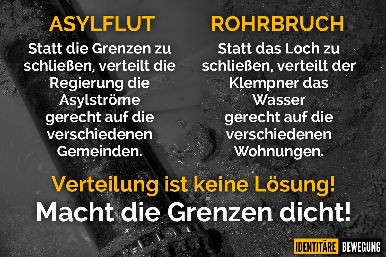 Mit kreuzbraven, biederen Bürgerkids in gelben Regenmänteln fehlt auch das abschreckende Bild von Militanz oder Gewaltbereitschaft, obwohl natürlich beides unterschwellig und als Drohung vorhanden ist. Mit der Umkehrung bzw. der Teilübernahmen linker und antirassistischer Narrativer gelingt ihnen so eine geschickte Inszenierung. Diese Strategie- und Diskursverschiebung ist genau das was eine Neue Rechte so gefährlich macht, auch unabhängig ihrer nominellen Grüße. Mit der Kampagne wie dieser wird Akzeptanz für die Benennung von unerwünschten Gruppen einer Gesellschaft geschaffen. Diese wird immer auch als eine Bedrohung dargestellt, weswegen die an der Macht seiende Mehrheitsgesellschaft unbedingt geschützt werden müsse. Praktischerweise kann aktionistisch gleich mit einer trainierten Schutzgruppe daran angeschlossen werden.