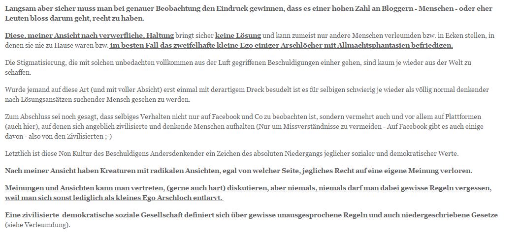 Am Abend erschien noch dieser Artikel, in dem die Kritiker_innen wörtlich als „Kreaturen“ und „Arschlöcher“ bezeichnet. Was ist das Selbstverständnis einer Plattform, die solche Artikel online stellt?