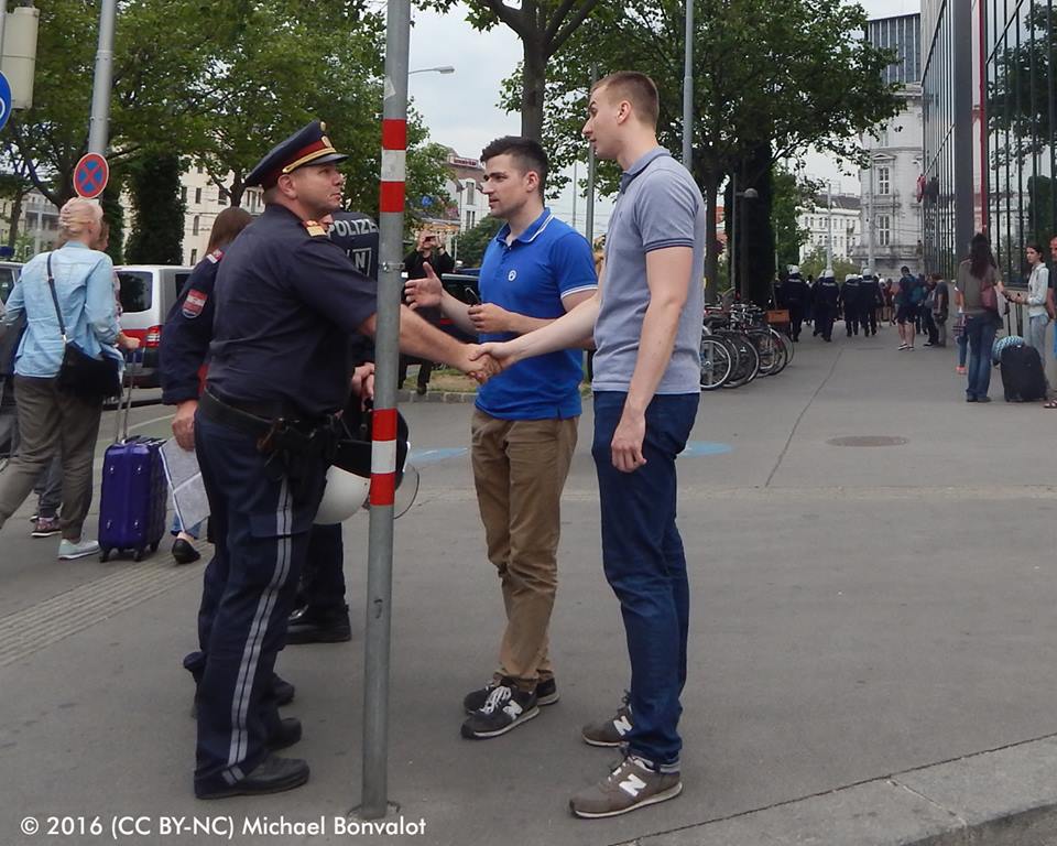 4. Zum wiederholten Mal durfte eine rechtsextreme Demo stattfinden, die klar menschenverachtend ist und die ein erhebliches Risiko für die öffentliche Sicherheit (und insbesondere gefährdete Gruppen wie Linke, Migrant_innen, Muslime, Antifaschist_innen etc) darstellt. Und das nachdem es zu Übergriffen und angedrohten Übergriffen der Identitären und ihres Umfelds gekommen ist. Warum?